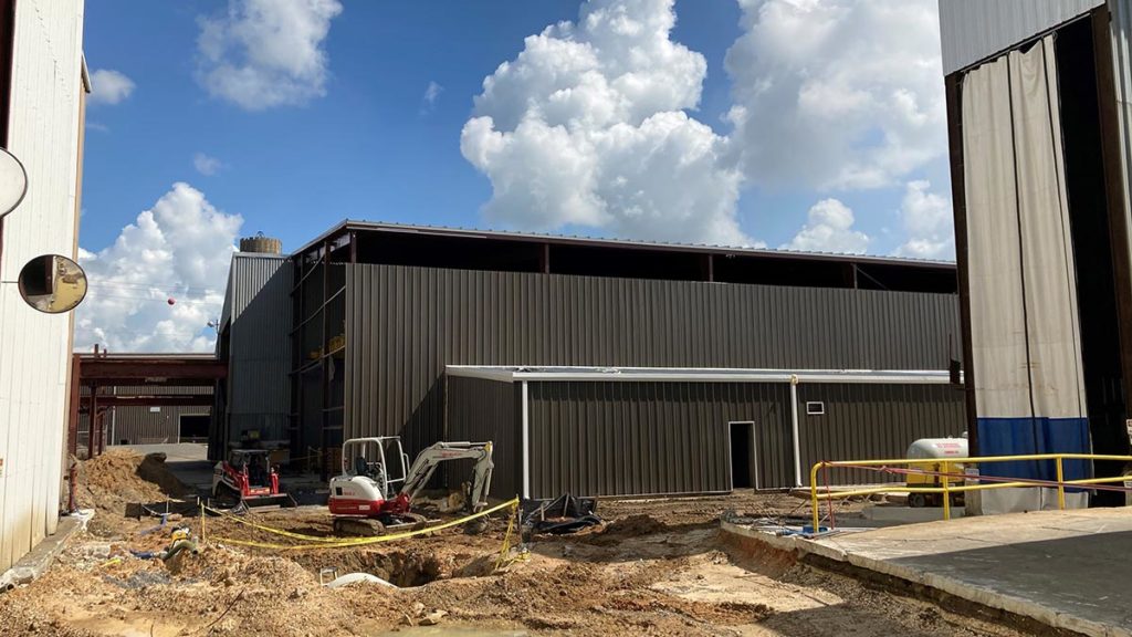 Vulcan Steel Structures is known for its excellent customer service, and a unique project for Harris Equipment Company in Cordele, Georgia, shows how we put that into practice. Harris is a leading manufacturer of waste management and recycling equipment such as balers, compactors and scrap metal processors. Vulcan was asked to provide a single-slope metal building that attaches to an existing structure while also covering part of another building that is currently in use.