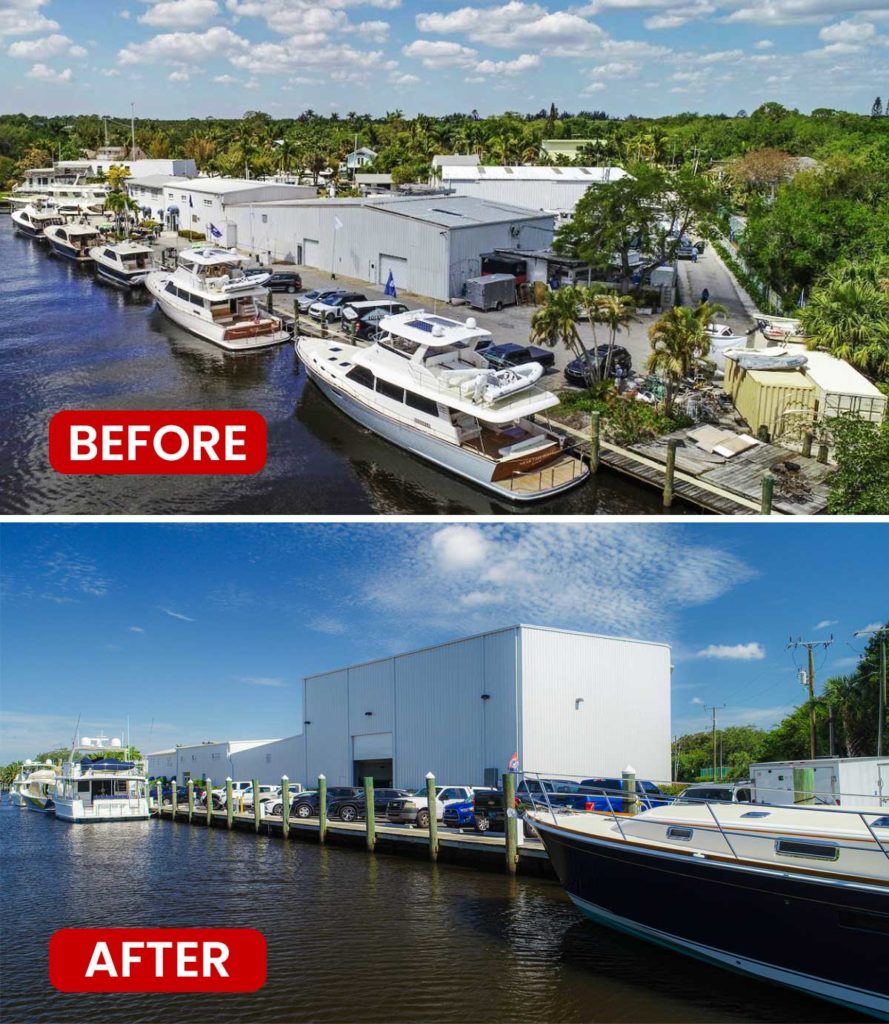 No ordinary facility will do when you serve some of the most expensive yachts from around the world. So, when Grand Banks Yachts decided to set up shop in Stuart, Florida they bought an existing 12,000-square-foot boatyard and planned a major renovation. The facility is now the US headquarters for Grand Banks Yachts and provides covered storage, slips, and a full-service boatyard with a 50-ton Travelift boat crane to serve the East Coast. Yachts travel the St Lucie River or the Lake Okeechobee lock system for after-sale service, maintenance, and upgrades.