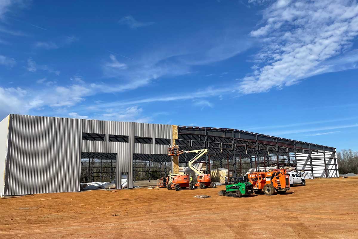 When customer demand for their machinery grew, Harris Manufacturing, located in Cordele, GA, engaged Vulcan Steel Structures to help the company expand to meet its needs. This particular project had six different structures interconnected within several existing structures. These buildings all had 24-gauge Galvalume UD324 roofs and 26-gauge standard color walls.