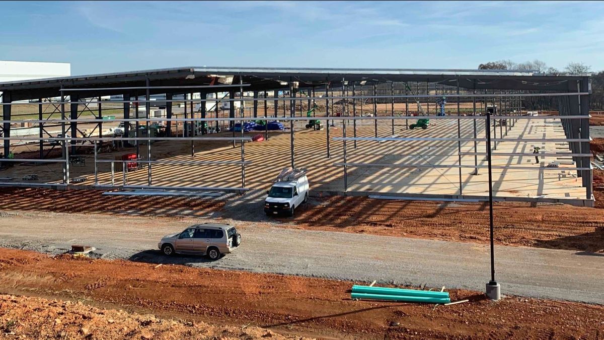 The project comprises two buildings. First is a 210-foot by 400-foot by 30-foot building with a gable-end eave design and 40-foot bays using 12-inch purlins. It has a 24-gauge Galvalume DL 324 standing-seam roof and 24-gauge Kynar PBR wall panels. The second building also has a gable-end eve design and measures 50 feet by 70 feet by 25 feet. It also features a 24-gauge Galvalume DL 324 standing-seam roof and 24-gauge Kynar PBR wall panels.