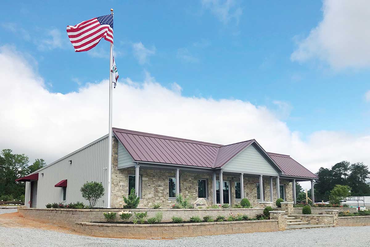 Stovall Nursery has been serving the area with quality products and expert landscaping services for more than 70 years, and now Cataula, AL, is home to this new 4,600-square-foot nursery building. It is a single slope building with 26-gauge standard color PBR roof panels and 26-guage standard color PBR wall panels. It features a parapet wall across the front sidewall and standard liner panels throughout the interior.