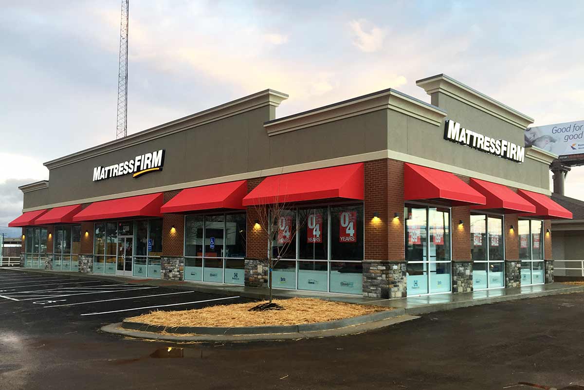 This Mattress Firm retail store in Lexington, KY, features a single-slope building with parapet and EFIS walls.