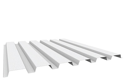 B Deck roof panels are 36″ wide with nested side laps and have 1 1/2″-deep ribs. This panel is used with a minimum of 1″ rigid board insulation with a BUR (built-up roofing) or TPO (thermoplastic polyolefin) roof system.