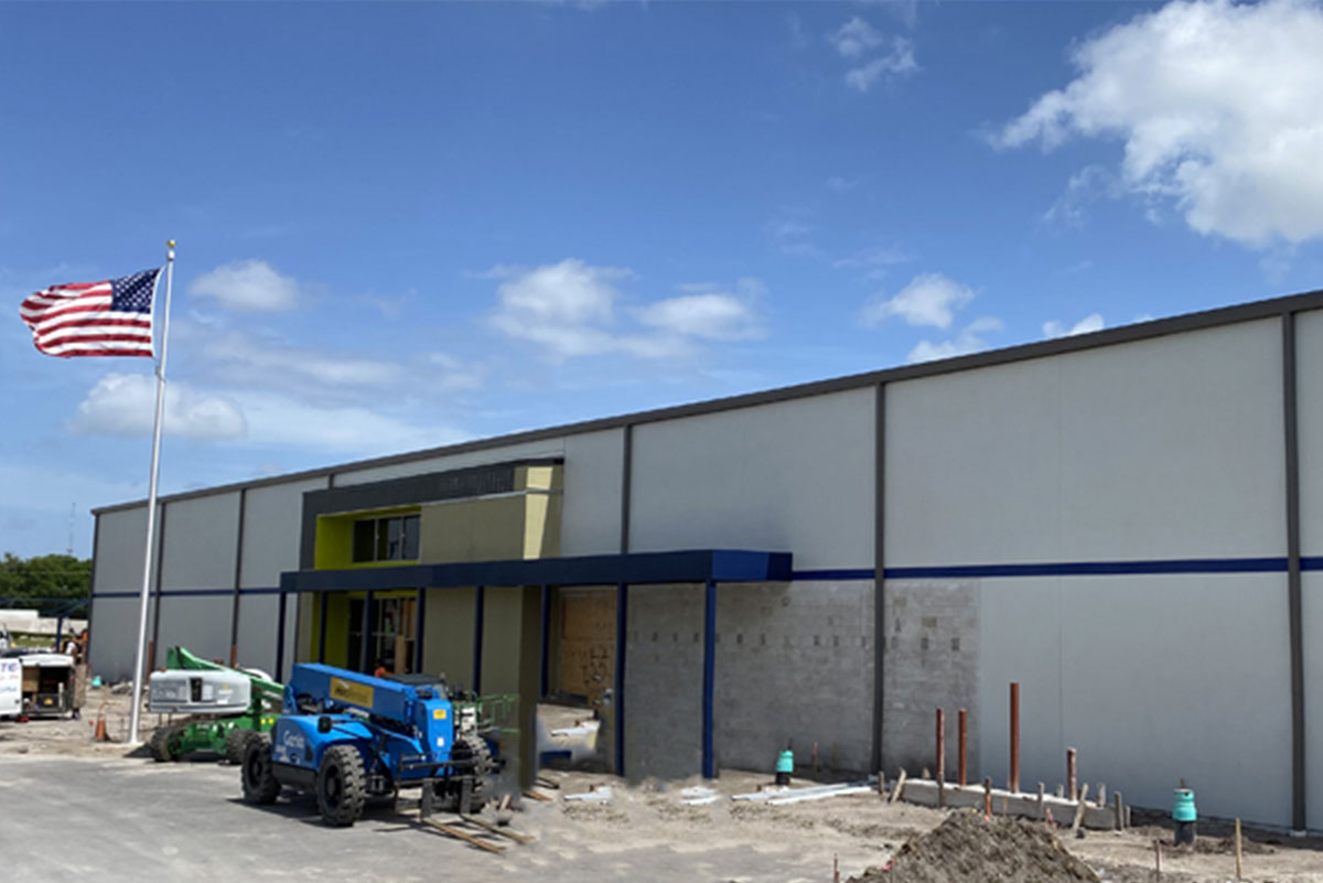 In Port St. Lucie, FL, The PickleBall Club, currently under construction, is a 33,293 sq ft building, measuring 121’ x 242’ x 26’. The building features a 1.5:12 roof slope with 24 GA SL216 roof panels, complemented by 26 GA PBR Kynar wall panels and a Simple Saver Insulation System.